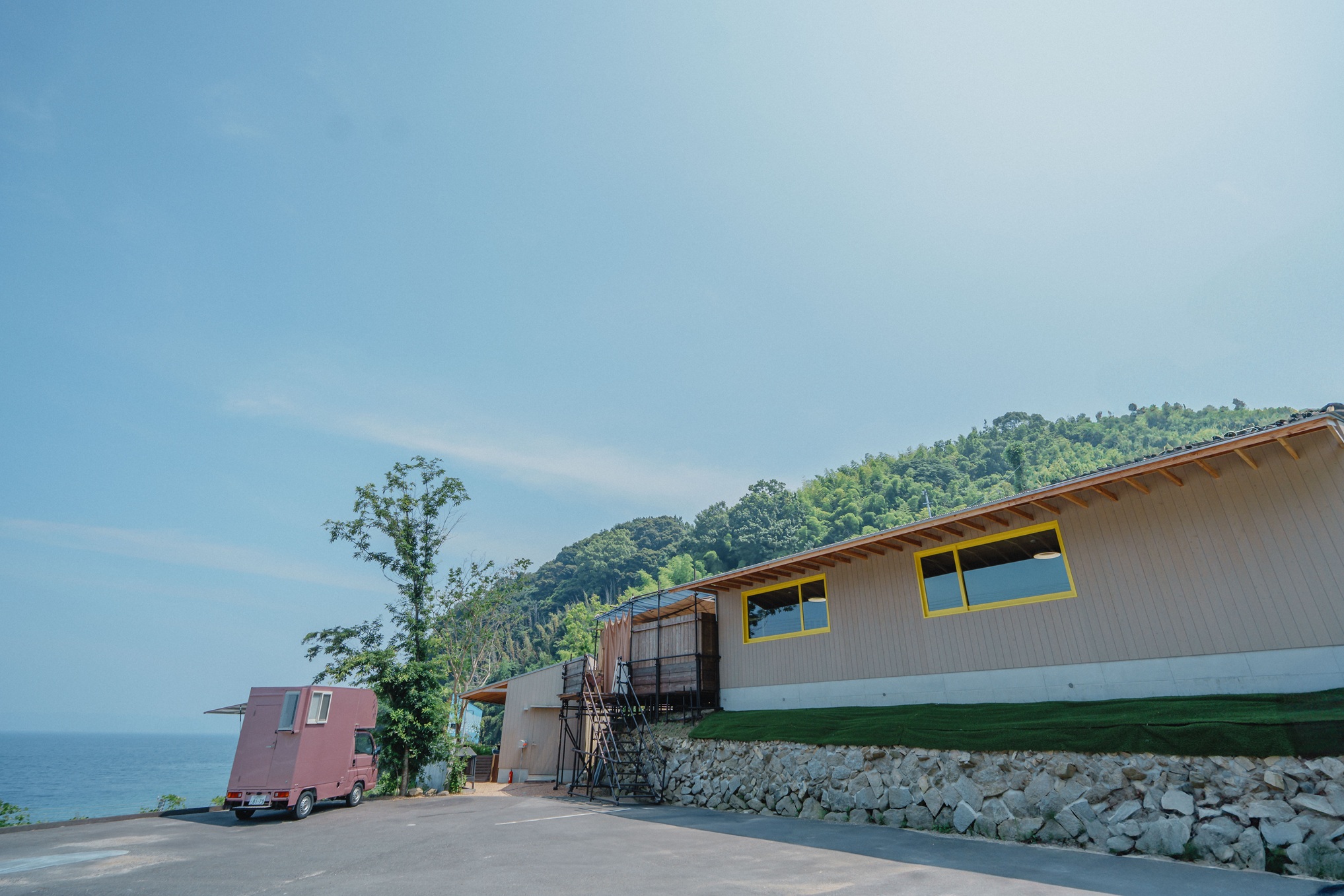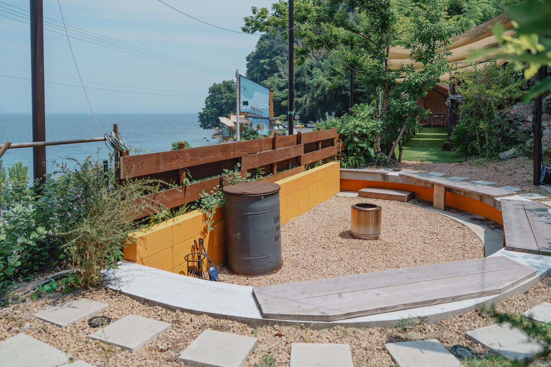 前面の海で海水浴を楽しんだり、サイクリングの途中で寄ったりなど、多目的に利用できる場としています。