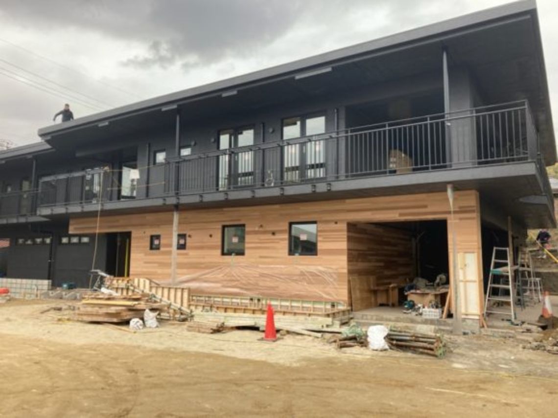 2021.1.142021.11.10 江田島ホテル改修工事 足場解体 広島設計事務所ブログ 一月が工事の大詰めの現場に今年初めて見に行きました。 足場が解体され、これからルーバーの設置や細かい工事を行います。 もともとは白一色の外観だったため、黒い色と木のアクセントで 以前とは全く違う建物のような印象になりそうです。 2月完工に向け、内部も工事が進んでいます。 これから壁紙や家具の設置を行うので、こちらも雰囲気ががらっと変わりそうですね。 サンプルを取り寄せ、外部の木の塗装色を何にするか悩み中です。 Posted on by 羽田佑輝