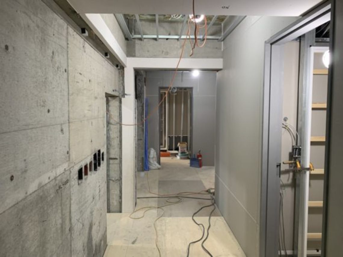内部も順調に進んでおり、各部屋の間仕切りができていますので、大分イメージがつきやすくなっています。