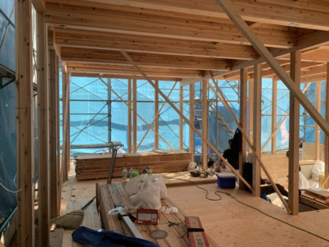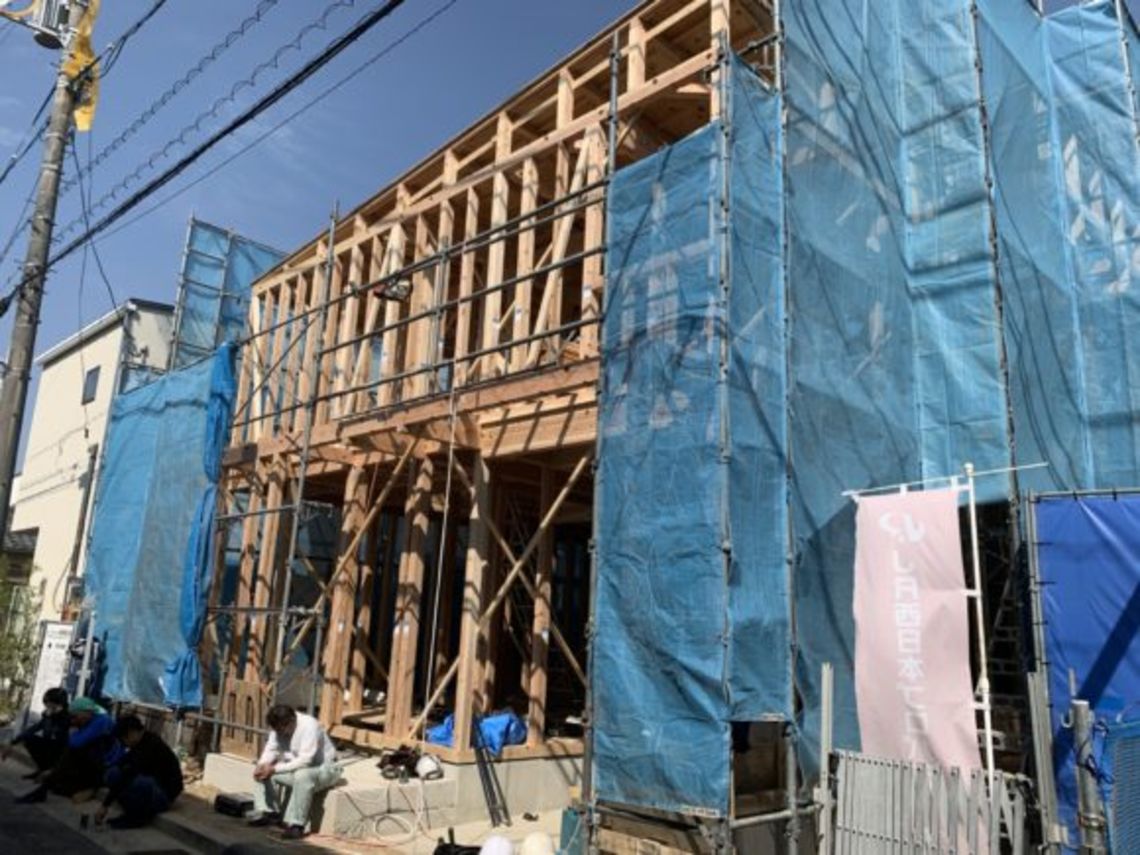 2020.5.152021.11.11 上棟現場確認 広島設計事務所ブログ 3月より着工した物件が上棟したので現場に確認に行きました。 前面道路の関係でレッカー車が使用できなかったのですが、大工さんが頑張ってくれたことと、 天候もよかったので何とかその日に屋根の防水まで行うことができました。 立地の関係で隣棟間隔が近いのですが、プランを工夫することで内部に光が届き、 開放的な空間になるよう設計しています。 完成は9月を予定しています。 Posted on by 羽田佑輝