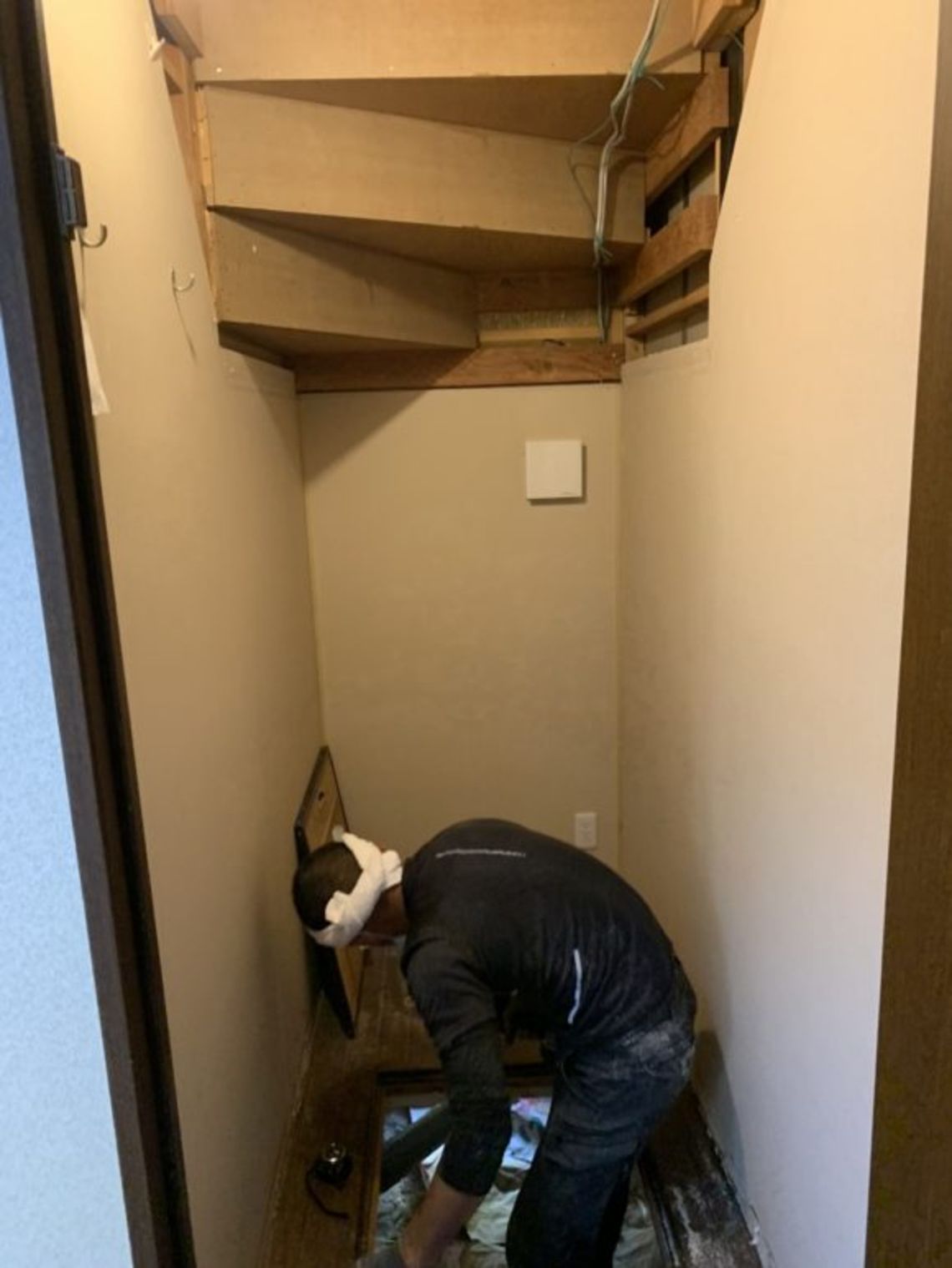この度のリフォームはお施主様が住まいながらの工事なので、一期工事としてトイレの設置を行いました。