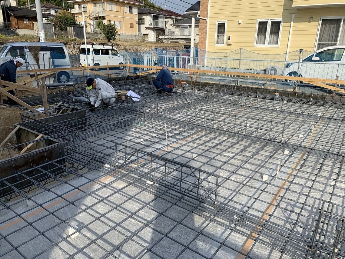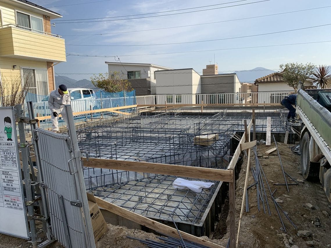 その後新築工事中の現場に行ったところ、基礎の配筋工事を進めていました。