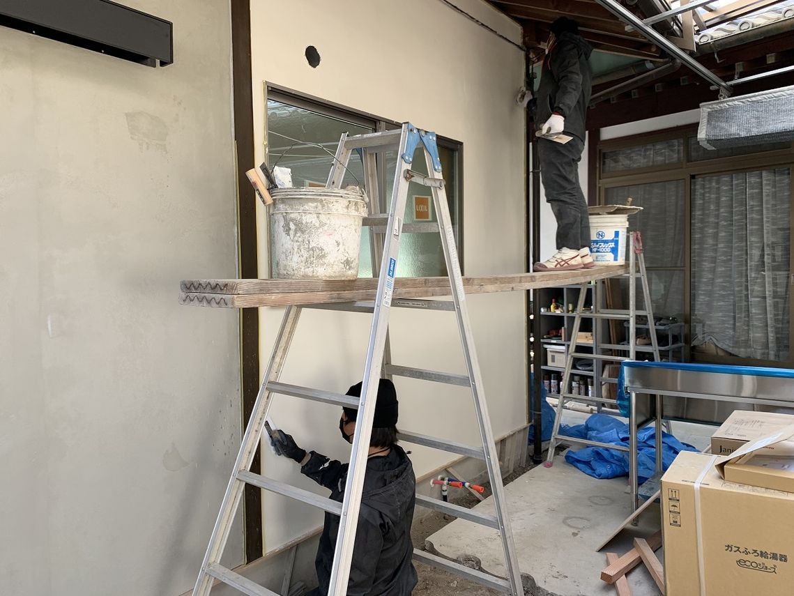 外壁は吹付だったものを撤去し、漆喰に仕上げ直しました。