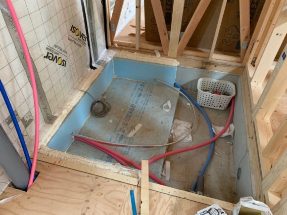写真はユニットバス下部の断熱材ですが、基礎の断熱材はボード状のものを使用しています。