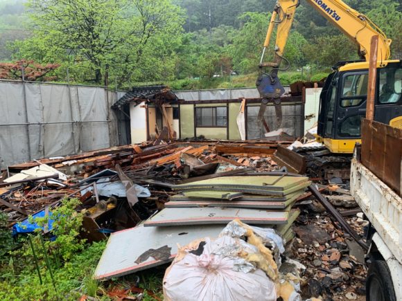 2019.4.262022.3.24 解体 安芸太田の家 広島設計事務所ブログ 只今進捗中の物件で、解体が進んでいる現場を確認しました。 建替え物件の為、もともと使用していた洗面台等、一部を再利用する計画なので、 移設準備をしてからの解体となっています。 もともと大きな家で、お庭の木を一部撤去するためお時間がかかります。 解体中は、解体後に始まる基礎図面の確認や、 その他仕様の打ち合わせを行いながら建物着工の準備をしていきます。 解体時にはほこりや音等、 近隣の方に迷惑がかからないように注意が必要です。 Posted on by 羽田佑輝