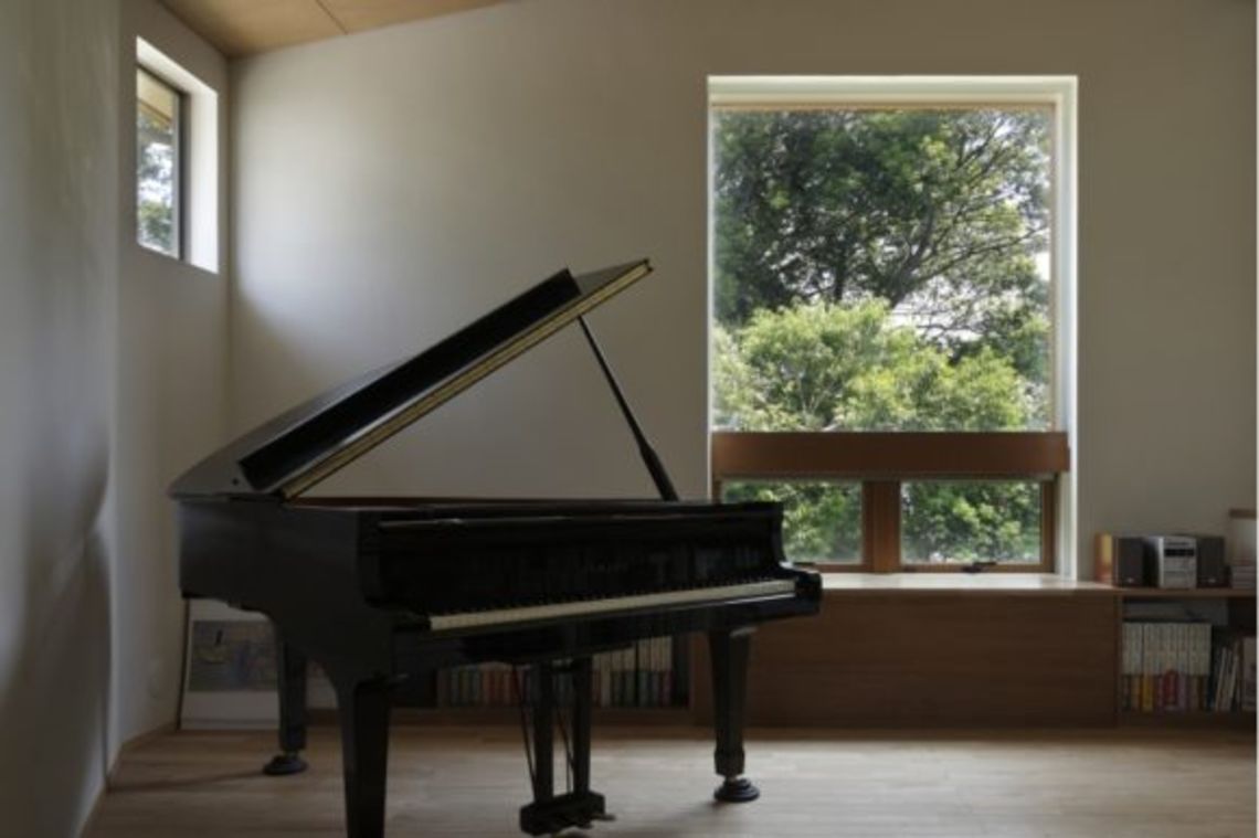 住宅密集地に建つ、インナーガレージやピアノ室があるお家です。