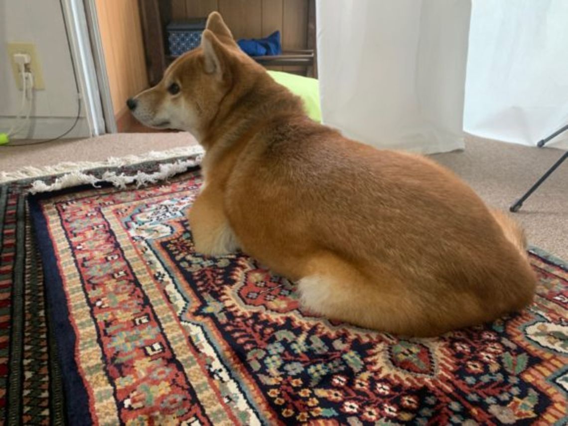 床に投げてたら、さっそく絨毯の上を陣取っていました。