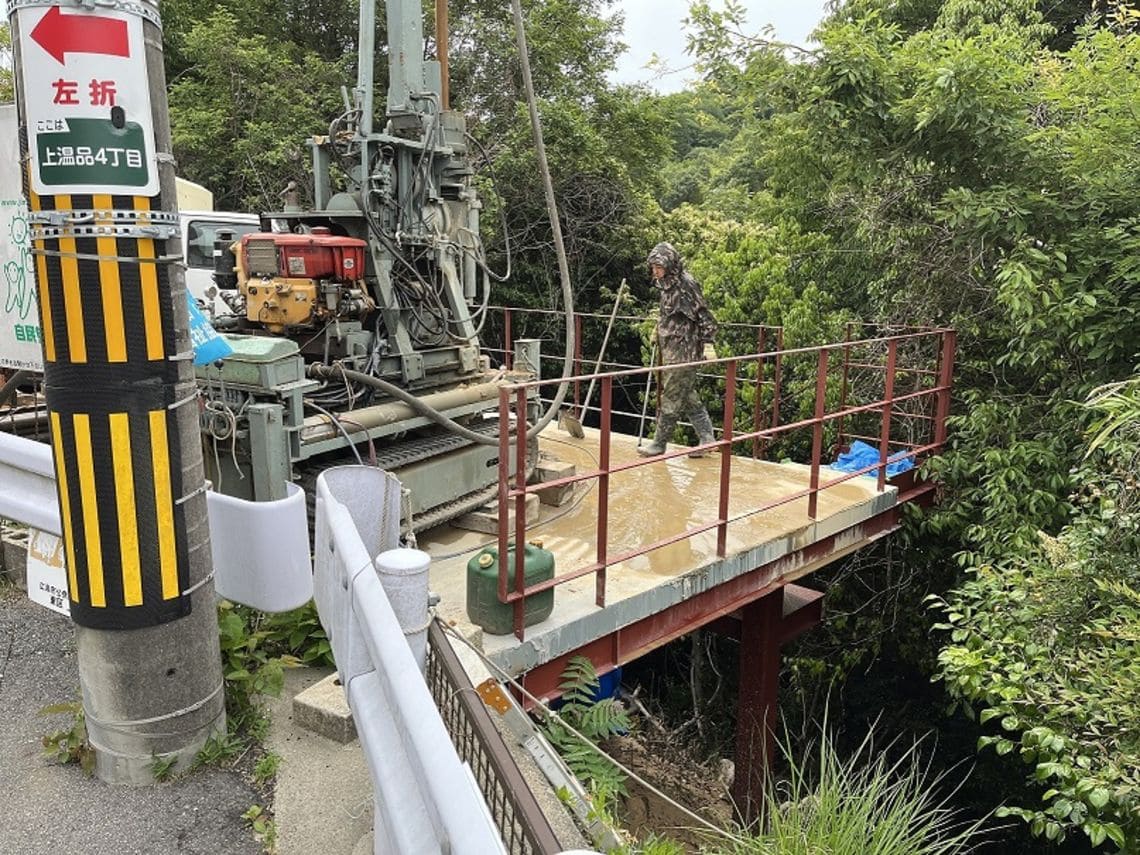駐車場工事が完了した段階で、井戸水のボーリングをしている最中です。