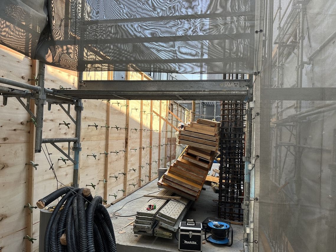 日中は鉄筋が日射で熱くなっており、触れないほどです。