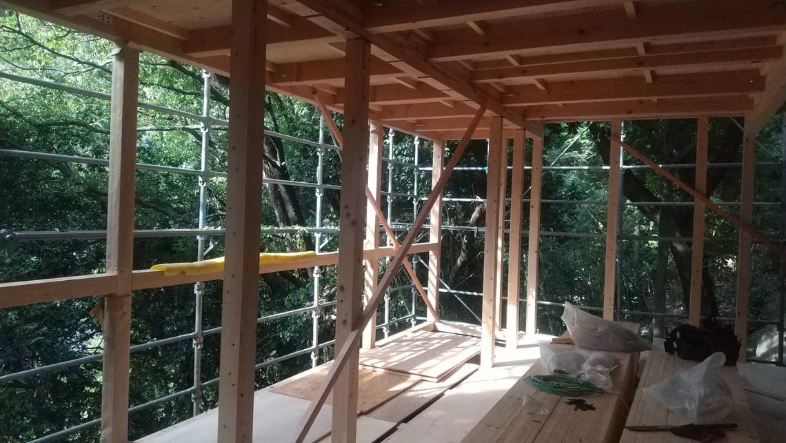 工事が進んでおりました斜面に建つサウナ施設ですが、