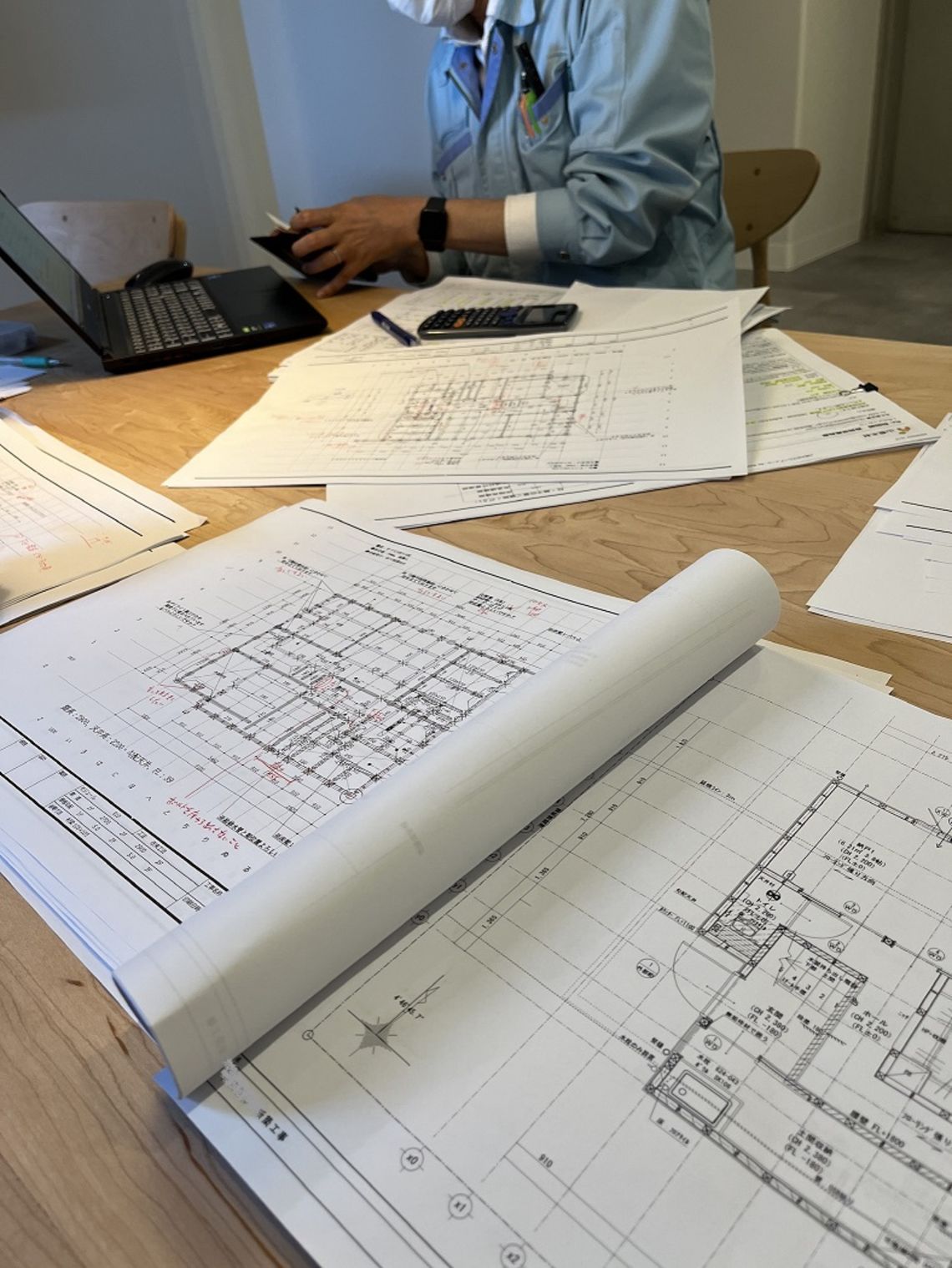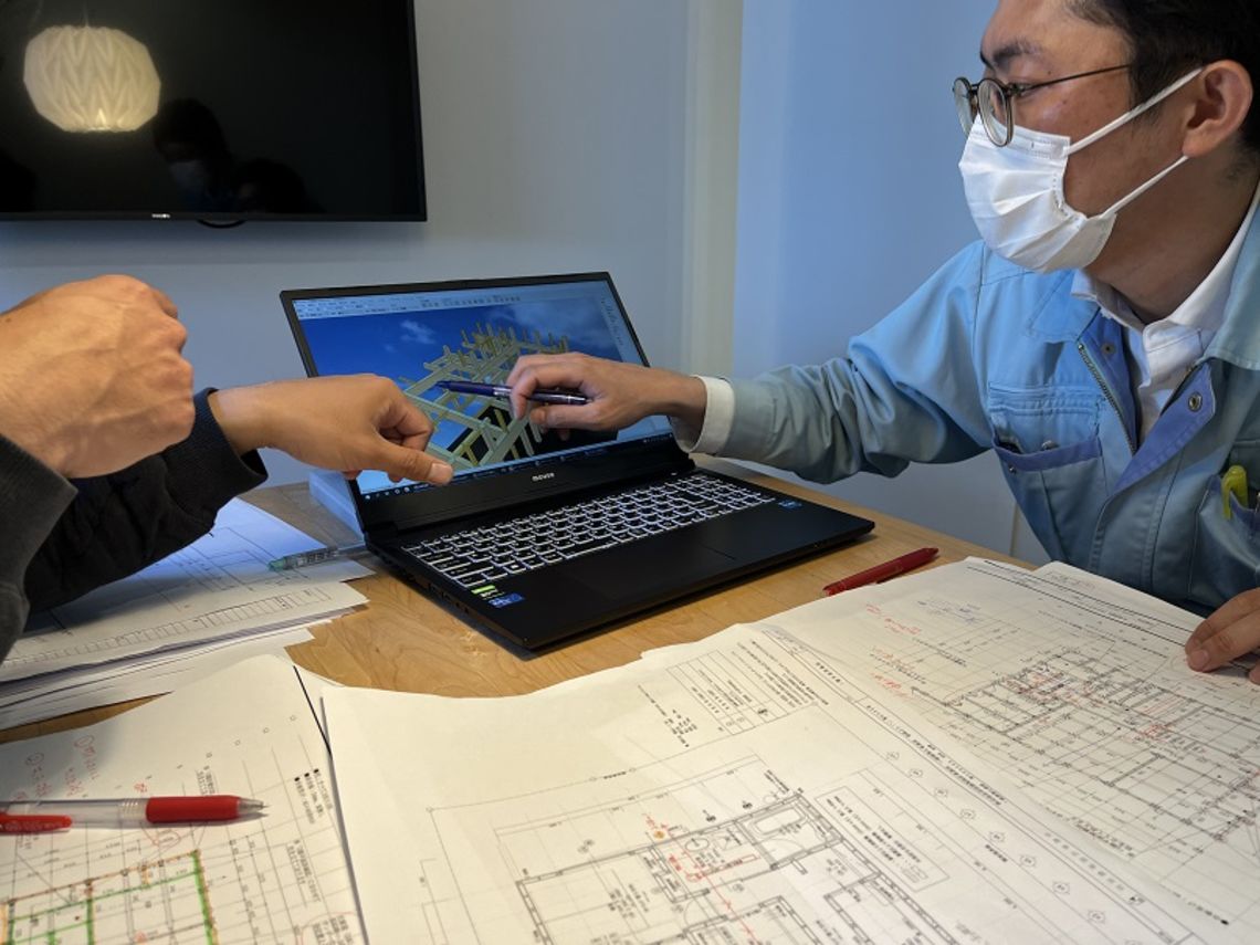 天井高さは確保できるかなど、柱1本の位置に至るまで入念に確認していきます。