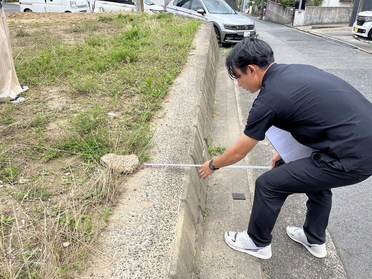 お施主様と建物配置の確認を行いました。