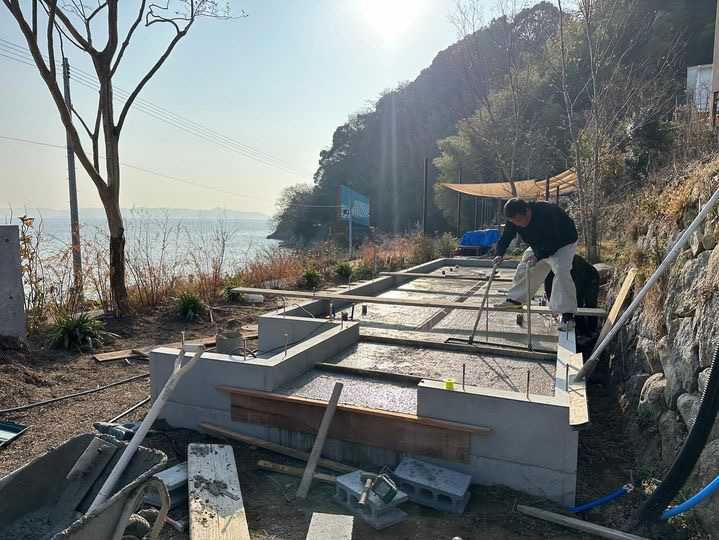 2024.2.52024.2.5 大島の店舗 基礎工事 山口県の周防大島にて、飲食店や宿泊施設などが集まった遊び場の建物工事に着手しました! 昨年、樹木を植えたり、テラスを作って公園のような憩いの場を1期工事として設置したのですが、 2期工事として、建物の工事を行います! 海が目の前に広がる、とても気持ちの良いロケーションです。 飲食棟と宿泊もできる多目的棟の2棟の建築です。 今年の春頃オープン予定です! Posted? by 羽田佑輝