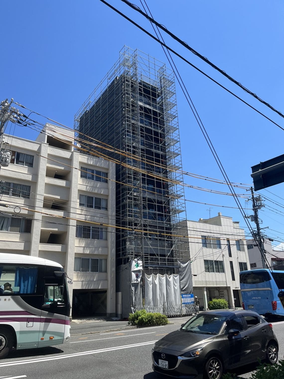 1件は9階建てで、完成間近で足場が取れる寸前です。