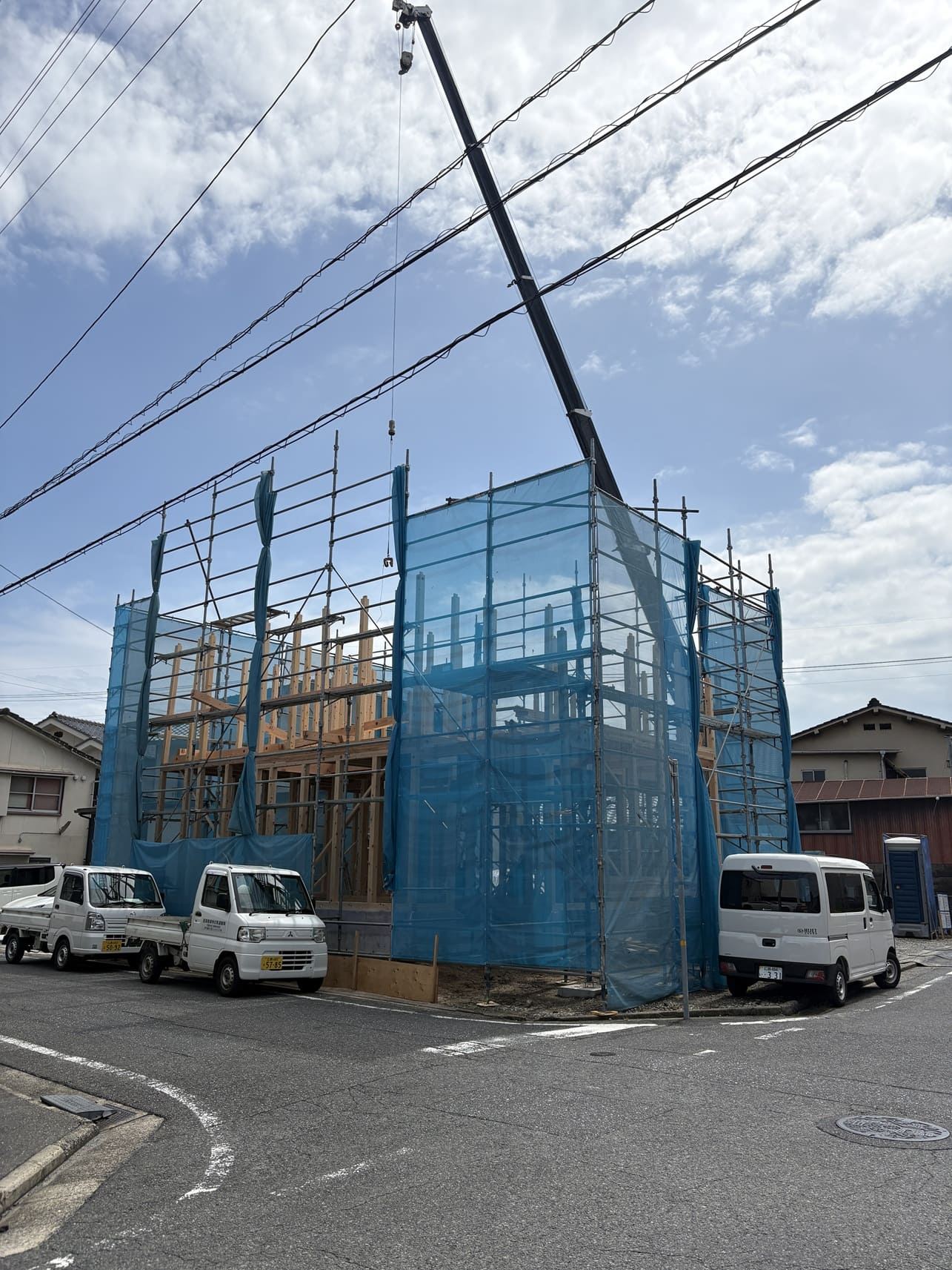 2025.10.13 三笠の家 上棟 工事が進んでおります三笠の家が無事上棟しました! 天気にも恵まれた中での上棟になりました。 こちらの物件は1階が店舗で2階が住居スペースになっている店舗併用住宅です。 店舗部のアプローチに、浮かせたアクセント壁を計画しており、 壁の下部は鉄柱で支えています! 来年春前完成の予定で進んでいます! Posted? by 羽田佑輝