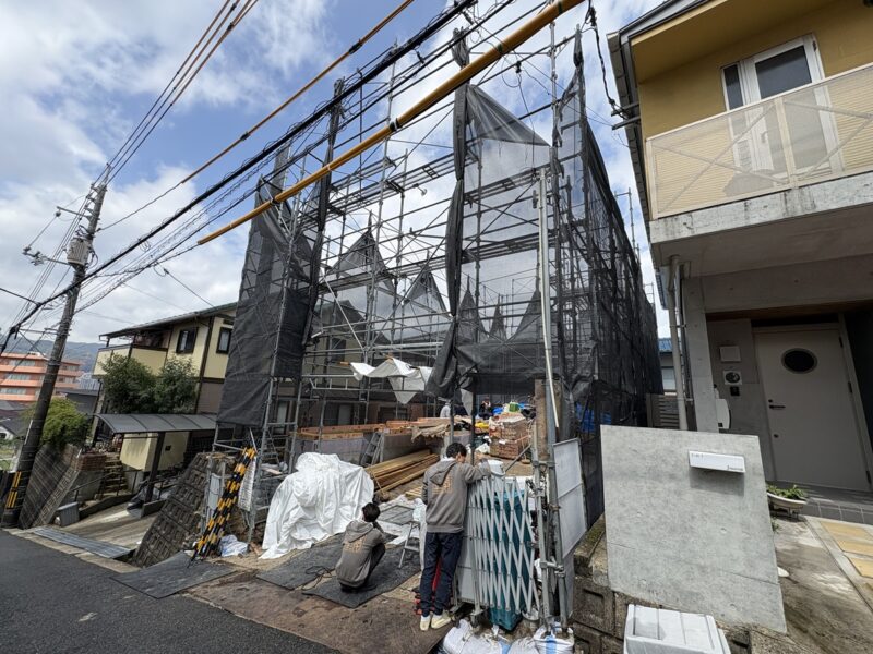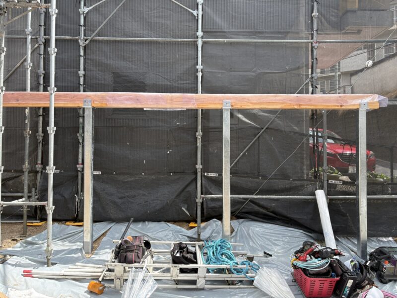 上棟日の午前中が雨だったので、午後から作業を始めました。