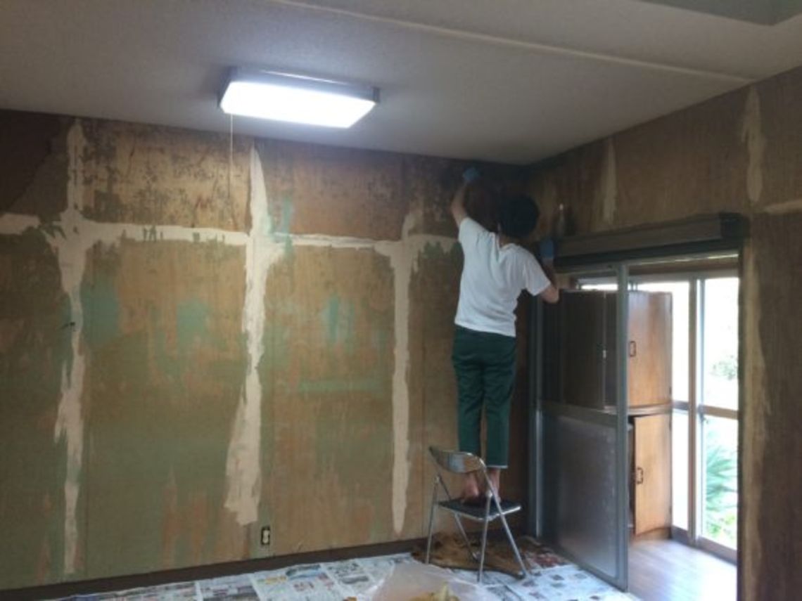自分たちの手でボロボロになった古い壁の仕上げを綺麗に剥がし、パテを塗り、さらに下地を塗り、仕上げ塗料を何回も塗り重ねてと、なんとも骨の折れる工程を踏んで出来た空間は感慨深いものです。