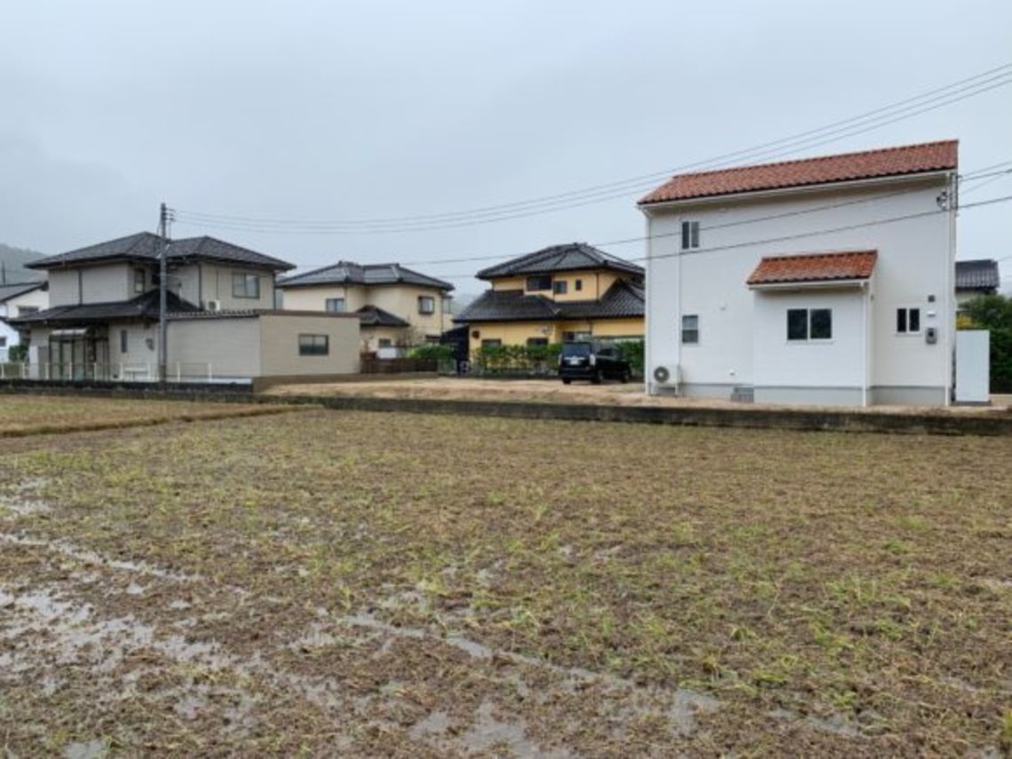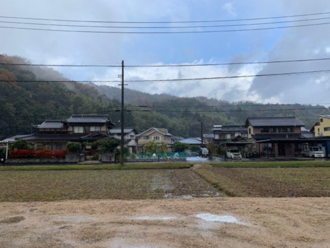 到着後、まず打合せ前に土地を確認しました。現場は背後に山を望むのどかな環境です。