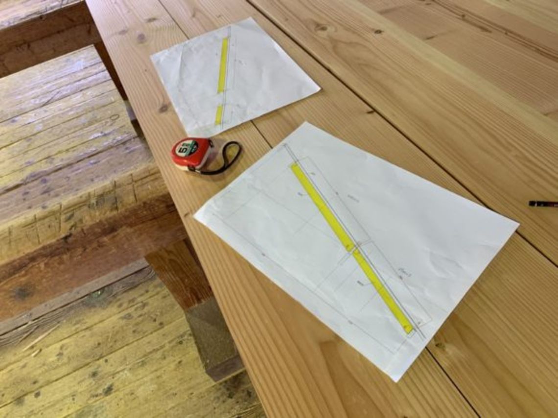 この度は梁を化粧で見せる箇所があるため、大工さんが向上においてある材料に手加工をしてくれていました。