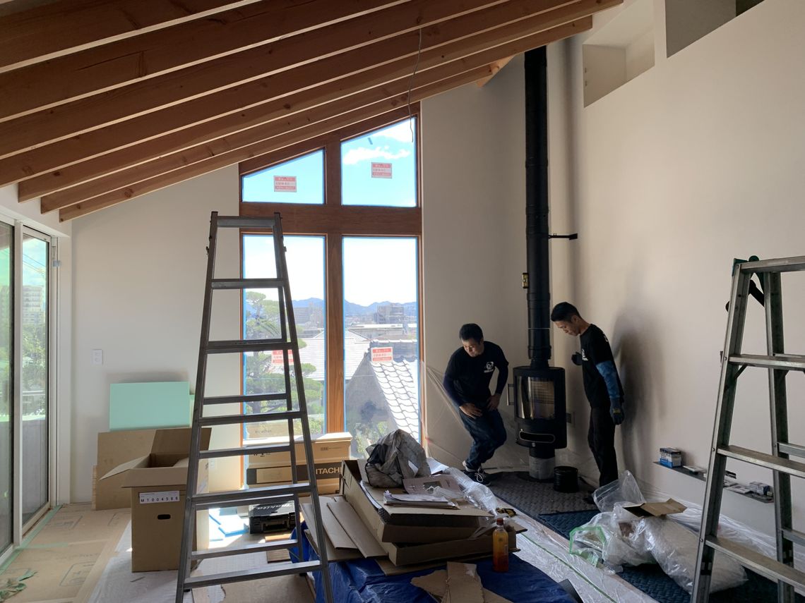 2021.10.142021.11.5 仕上げ工事 広島設計事務所ブログ 家具の設置後に壁や天井のい内装仕上げも終えました。 その後にトイレなどの設備や、照明器具などの設置を行います。 設置が楽しみだった薪ストーブもつきました。 壁が白くなることで一気に明るさが増しました。…
