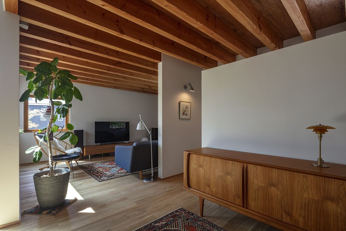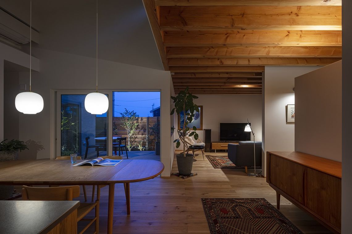 「外の間」はLDKの延長の空間としても利用でき、植えられた庭木は建物内部に視覚的な安らぎをもたらせてくれます。