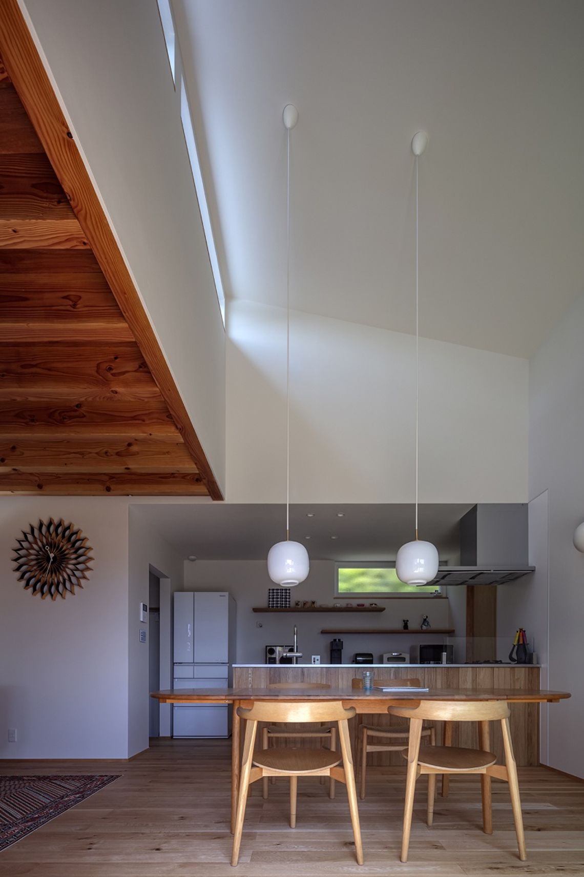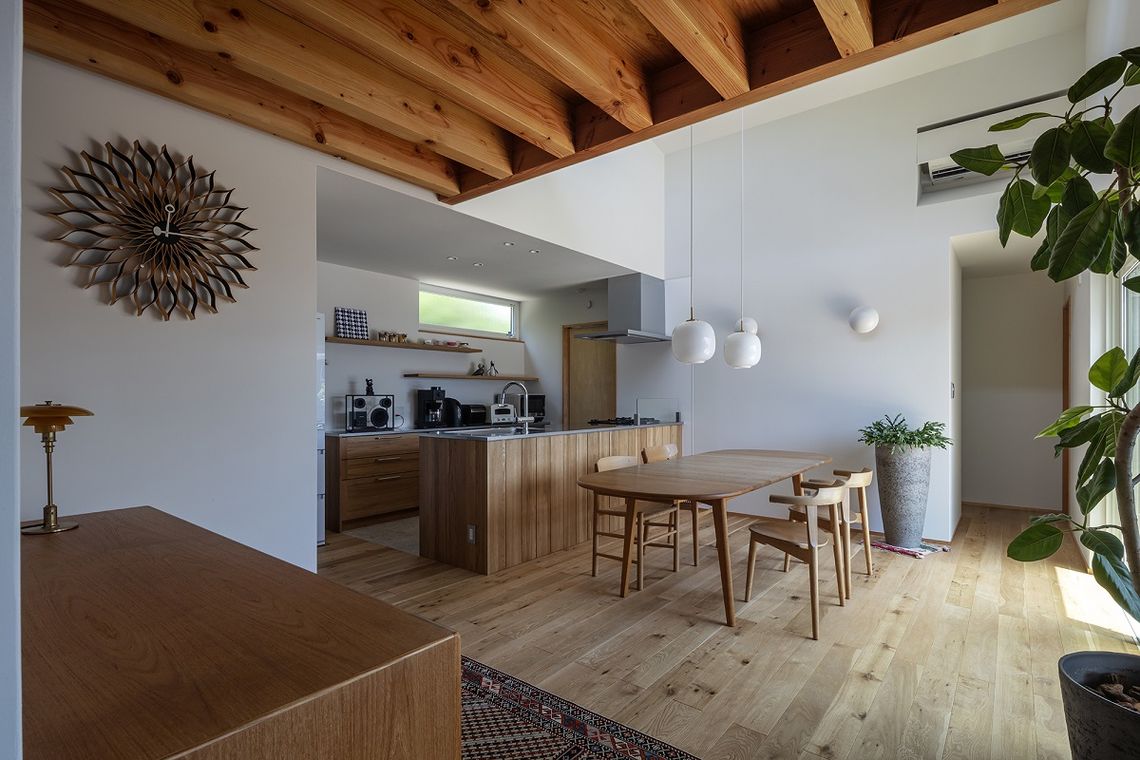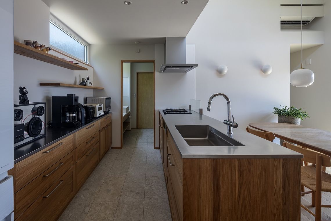無垢の木のキッチンを設置し、床や扉にも同材の無垢材を使用することで、空間に統一感が生まれ、無垢材ならではの自然の癒しや風合いを感じることができます。