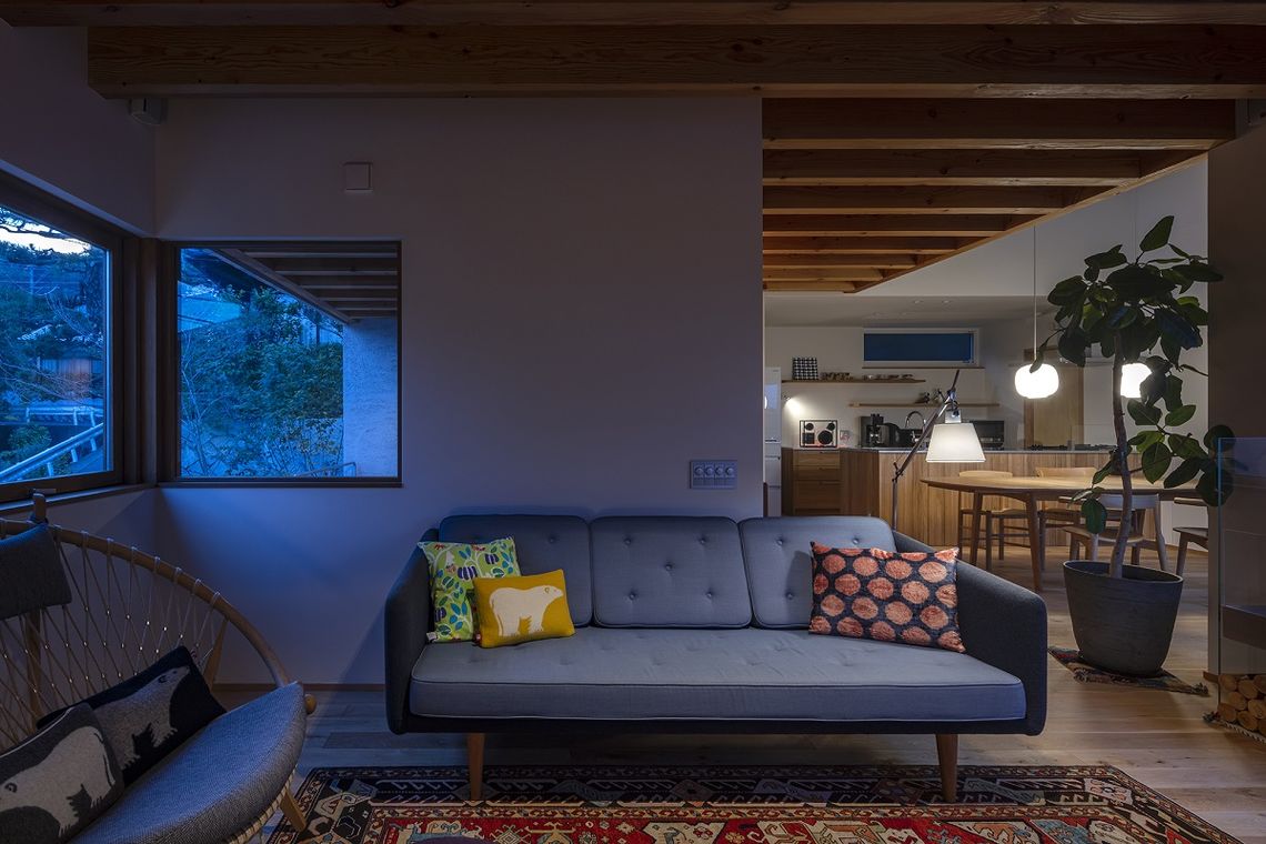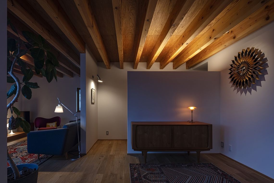 明るさの設計については、直接的な光を軽減するため、大開口からの日射の取得をなるべく避け、ハイサイドライト等による柔らかな自然光の取入れや、間接照明の設置により、必要なところへちょうどよい照度の確保を行い、各部へ陰影が生じてメリハリのある、心地のよい空間としています。