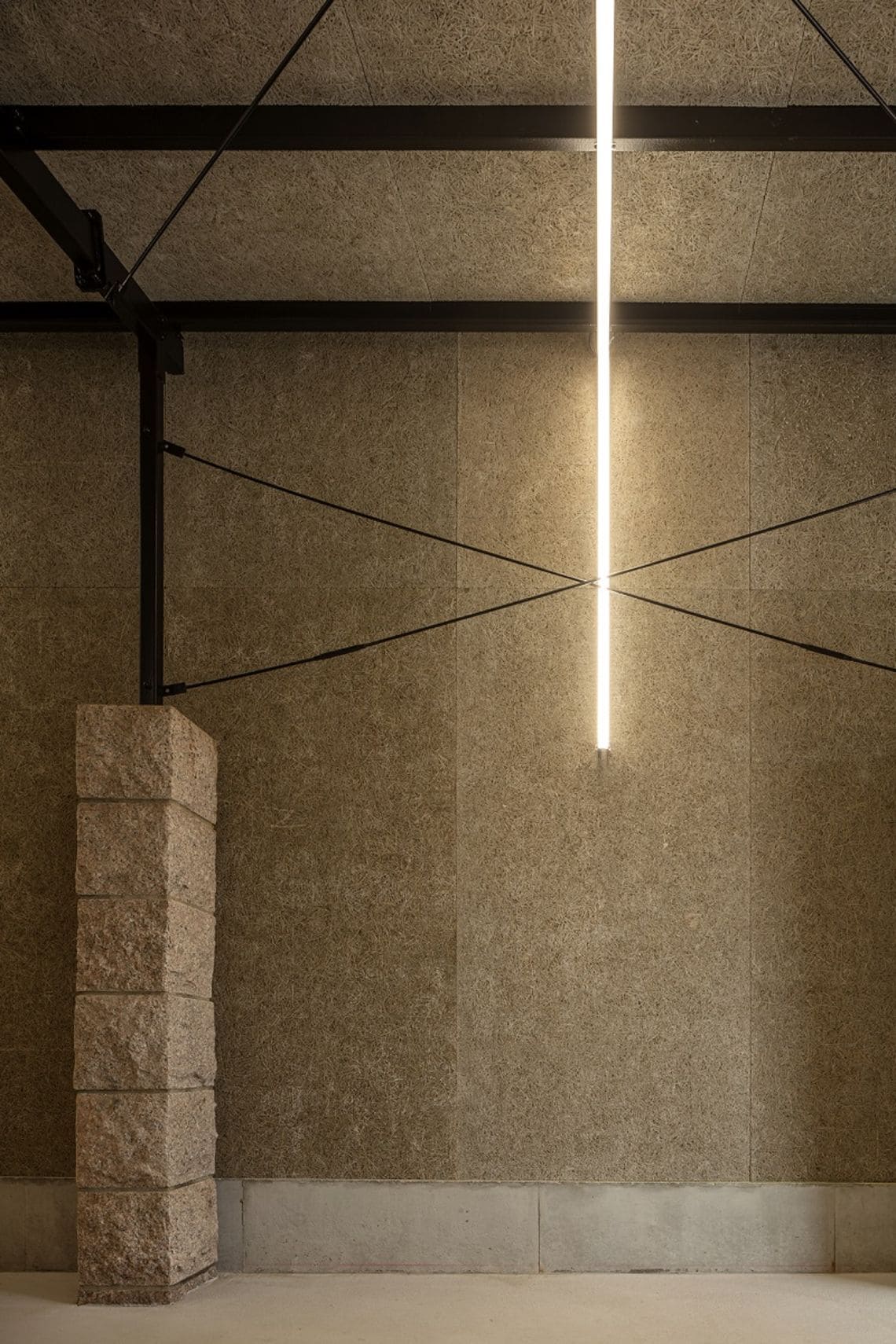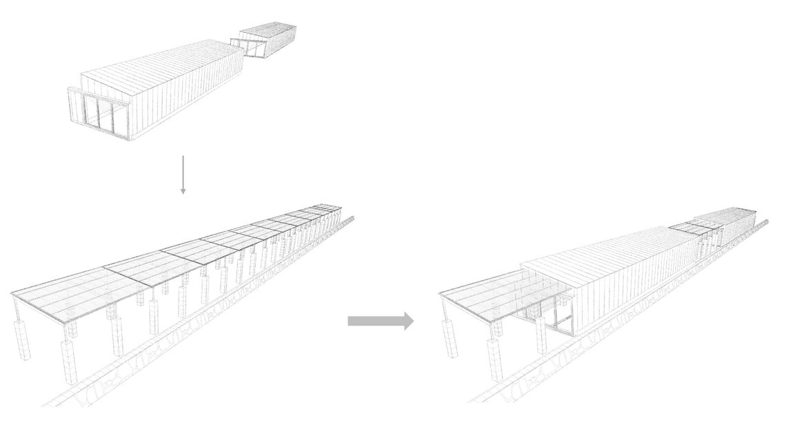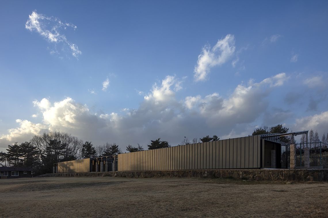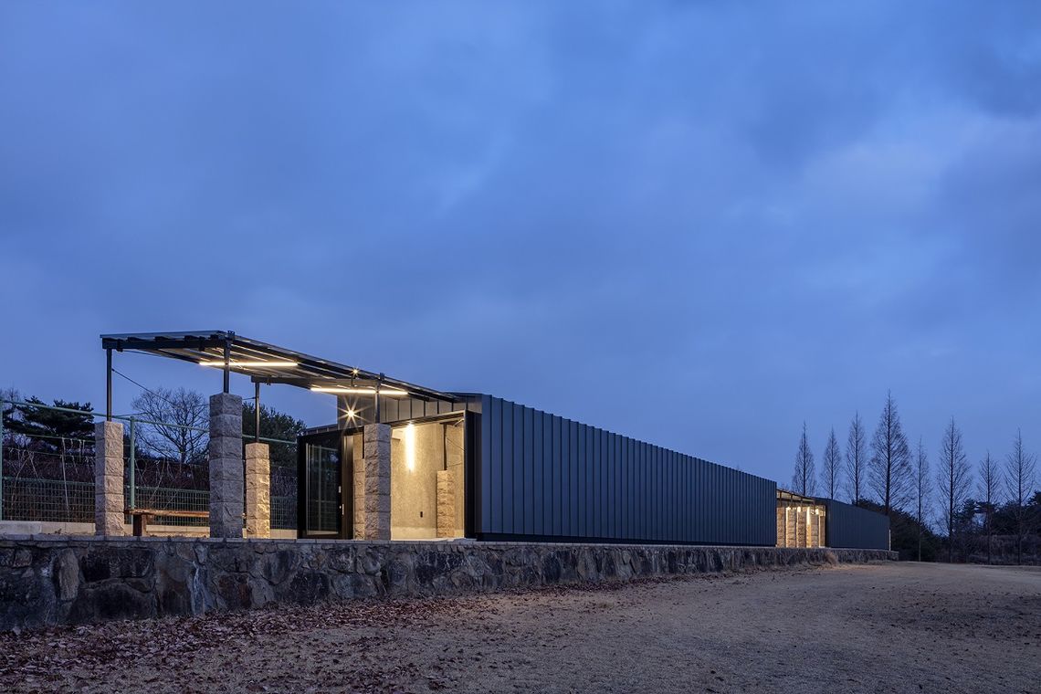 通常時は醸造の温度管理のため開口部は閉めきり、ワイナリーとして機能するが、開口部を開け放つことで、既存の石柱と鉄のフレームが連なる、1つの回廊となる。