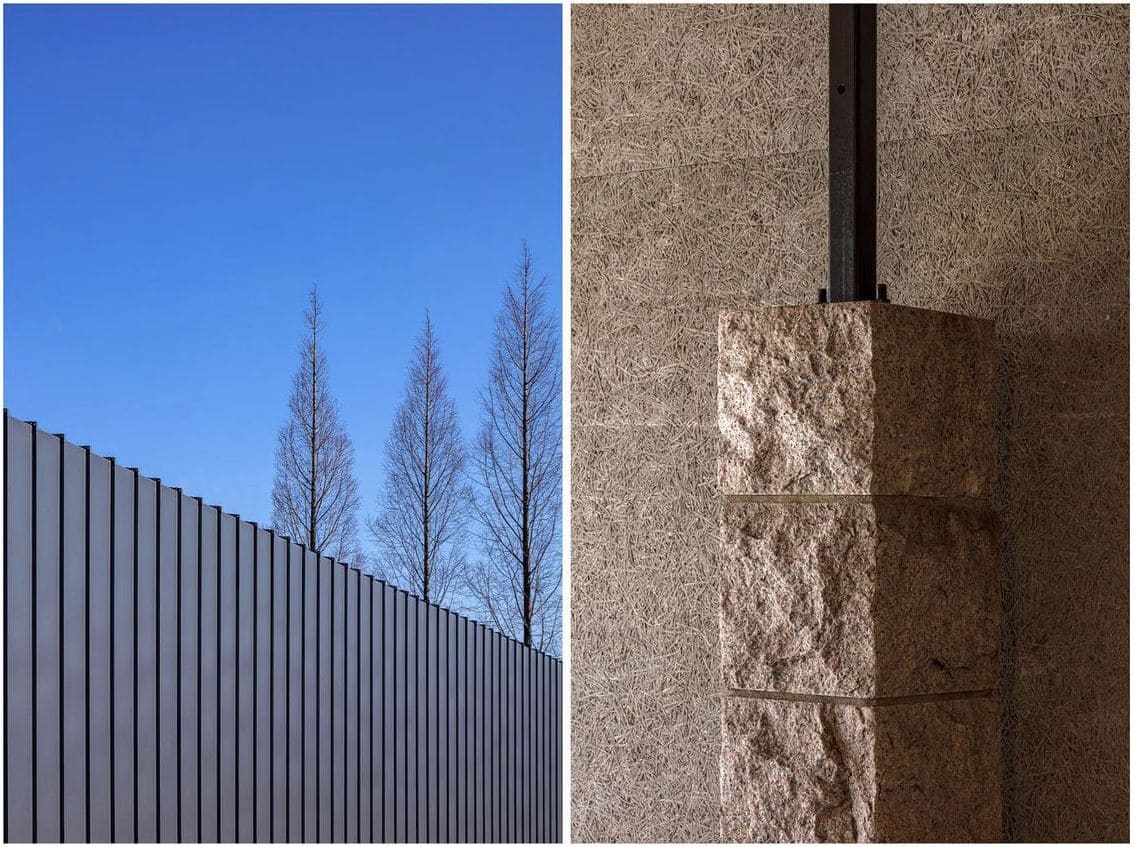無駄のない要素で構成された建物と、周囲の環境との調和により、空間自体が1つのインスタレーションにもなっている。