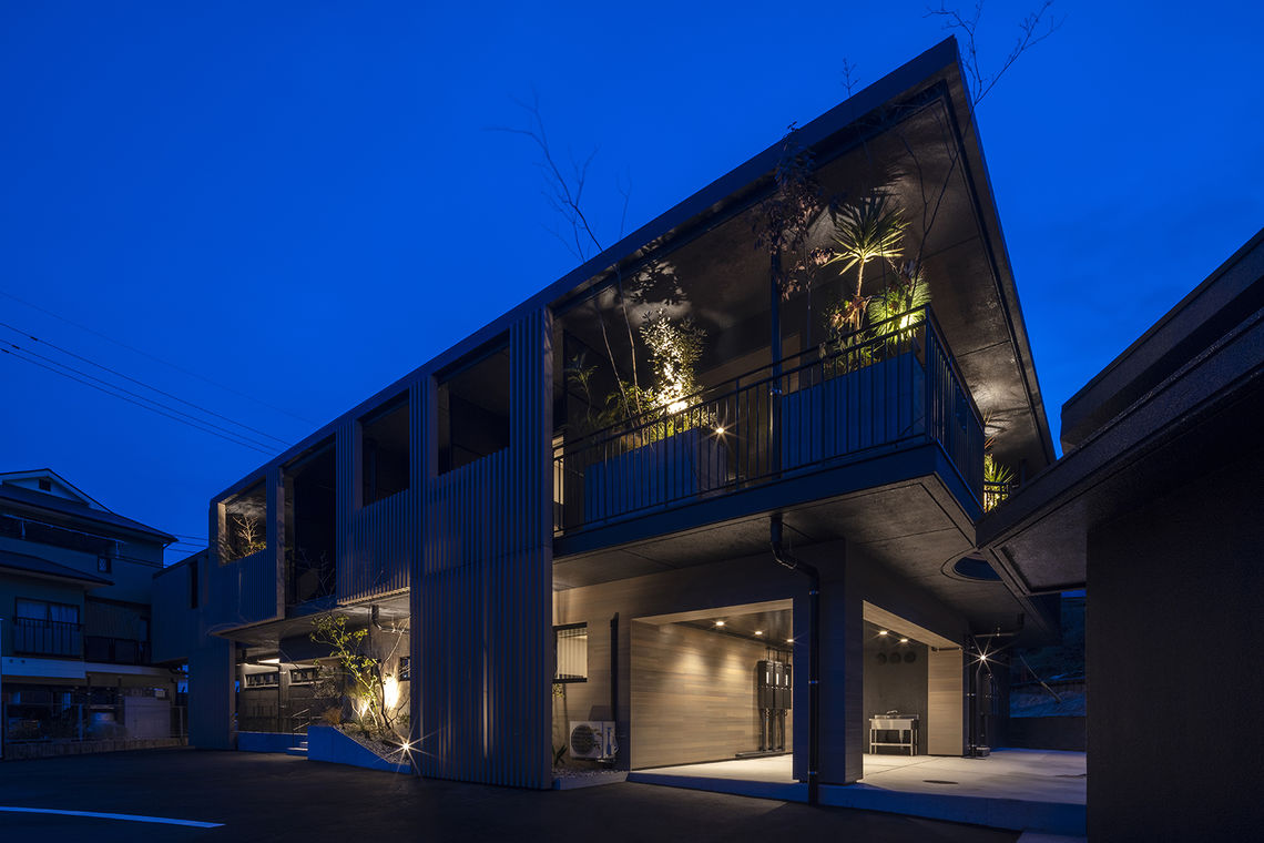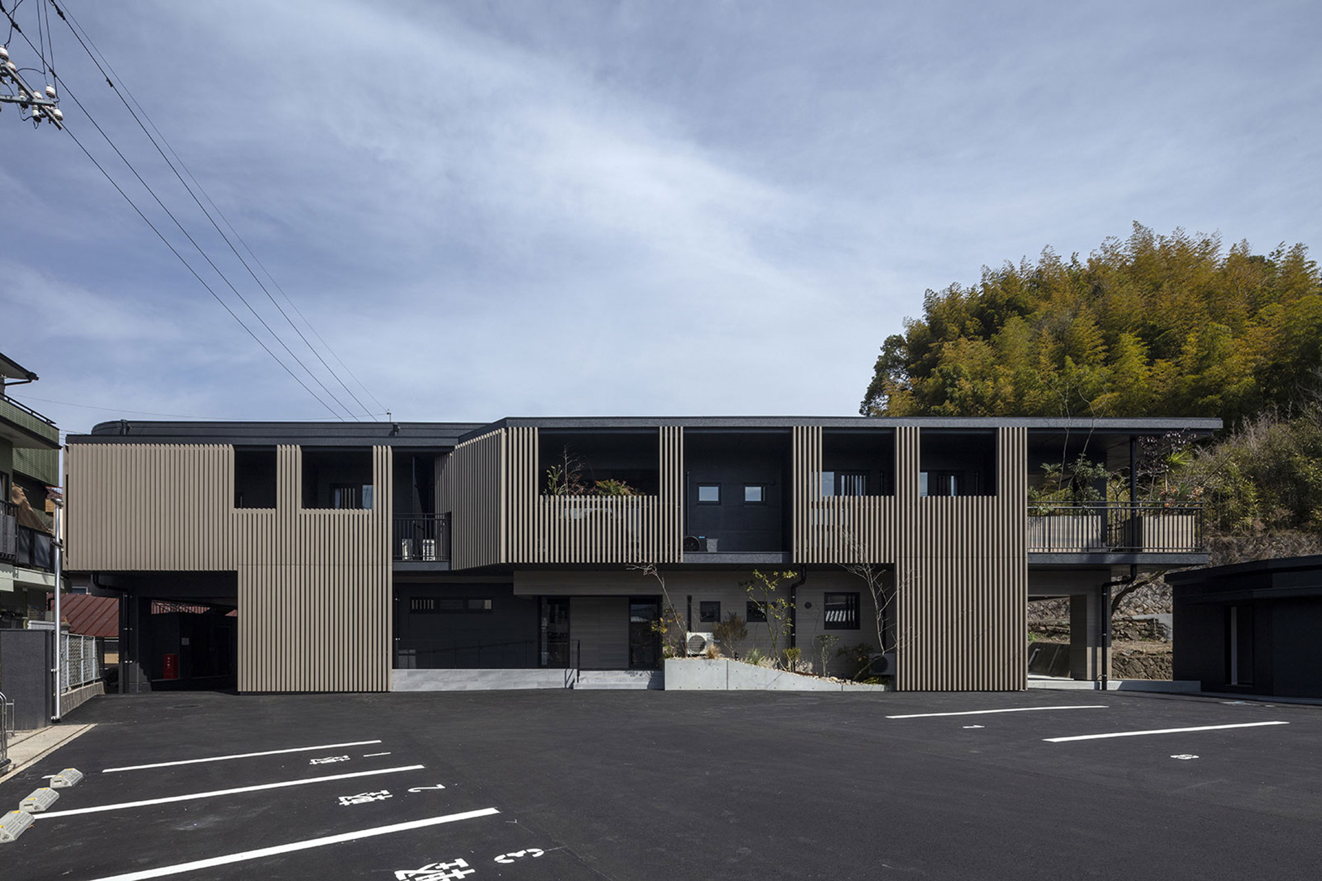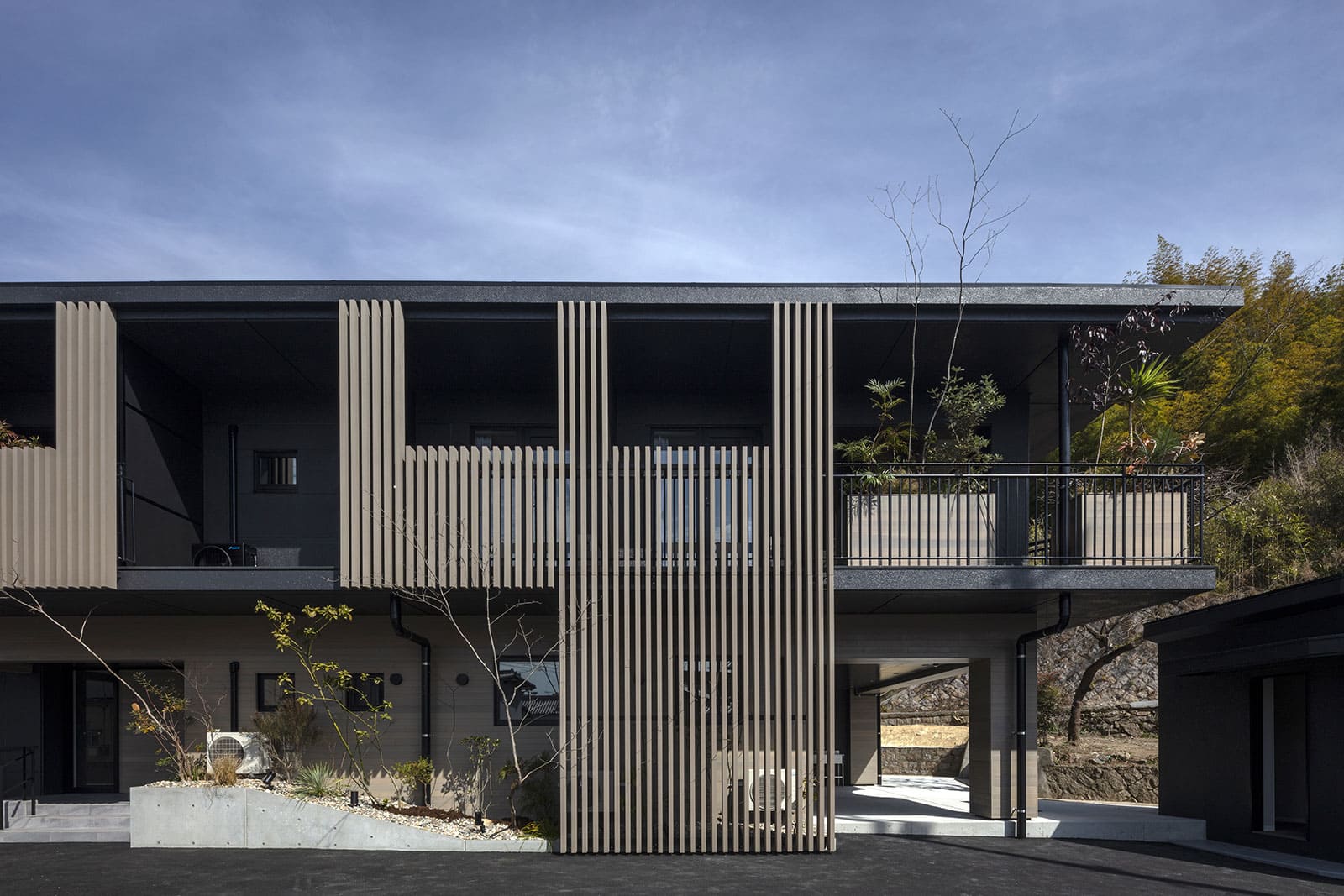 ファサードの特徴になっているルーバーは、外からの目線を緩やかに遮る役割も果たしている。
