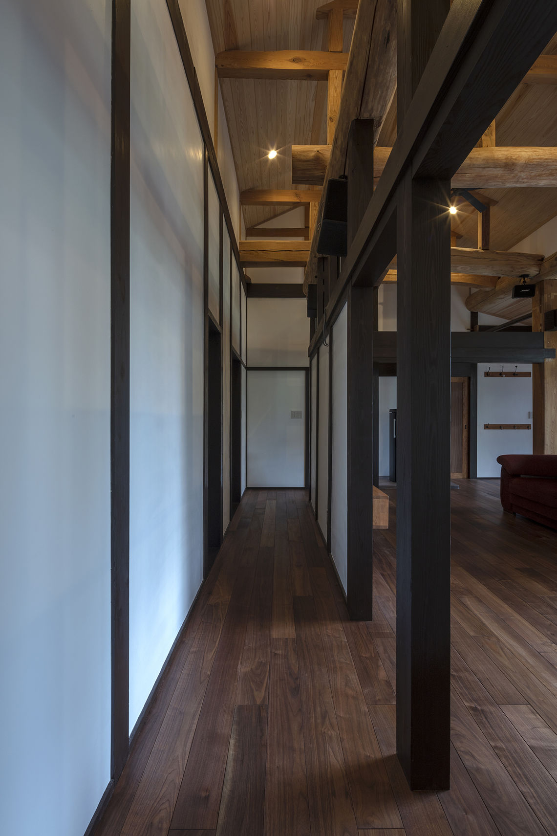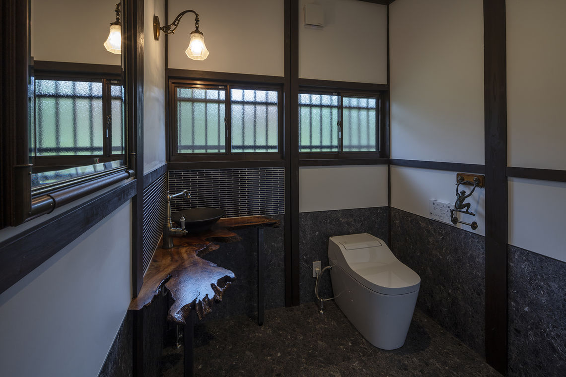 また、トイレの手洗いに以前使用していたテーブルの天板を再利用するなど、随所に従前の痕跡を残した。内壁は漆喰仕上げとすることで、室内の空気環境にも配慮。新たな趣味として、旧DKをフィットネスルームに変更し、建物の中心には薪ストーブを設置した。過去と未来の要素が共存しながら、これからもご家族と共に思い出を築いていけるような計画とした。